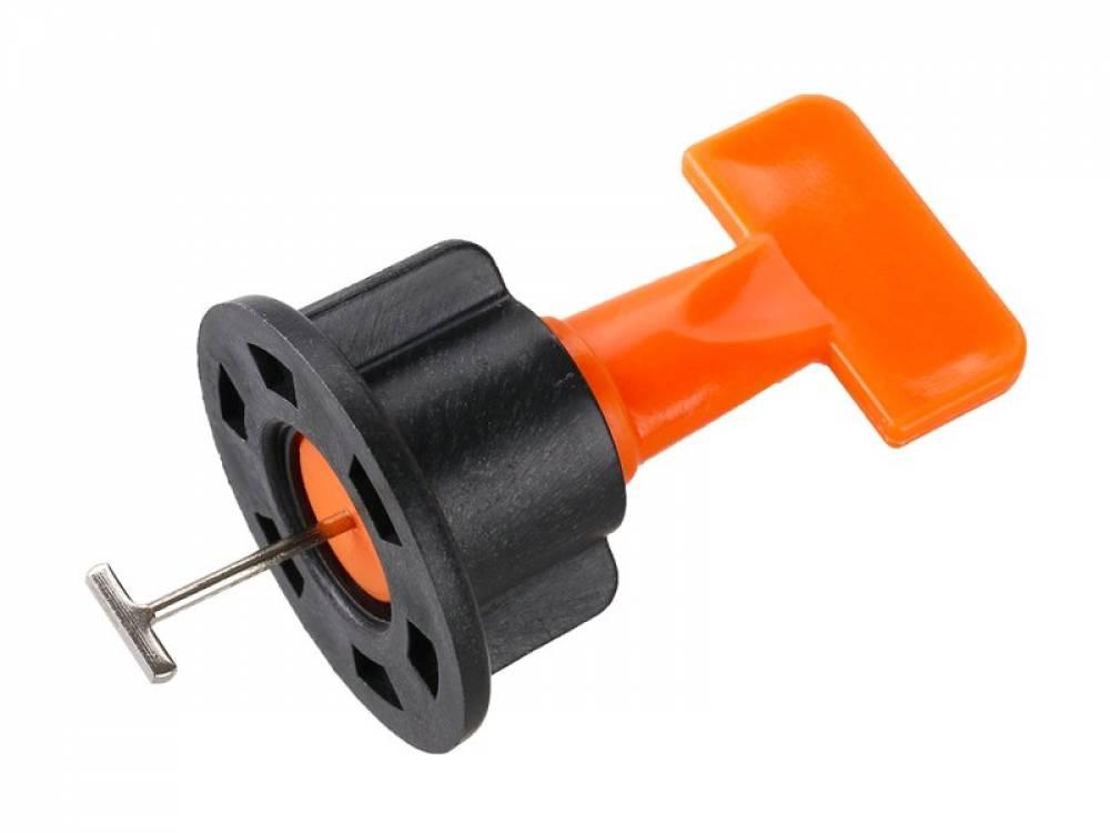 • jednoduchý postup - vsunúť "T" koncovku do škáry (min. 1,5 mm) medzi dlaždicami, následne pootočiť o 90 stupňov a dotiahnuť primeranou silou maticou, ktorá vďaka ploche zarovná dlaždice proti sebe, na uvoľnenie použite priložený kľúč