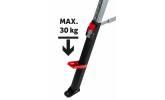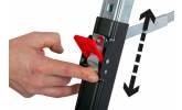 skládací a přenosná koza - podpěra s nosností 590 kg v páru 1180 kg intuitivní postup složení a rozložení, snadná manipulace a kompaktní rozměry po složení - pro přenos nebo převoz masivní celokovová konstrukce - výškově stavitelná v rozsahu 62 - 82 cm po obou stranách nastavitelné koncovky pro uchycení a fixaci dřevěných trámů nebo kovových profilů v rozmezí 4 - 9 cm nosná plocha s protikluznou vrstvou, na jedné straně noh výklopné opěrky pro OSB desky, lamino, apod. s nosností 30 kg na jednu opěrku Instruktážní video