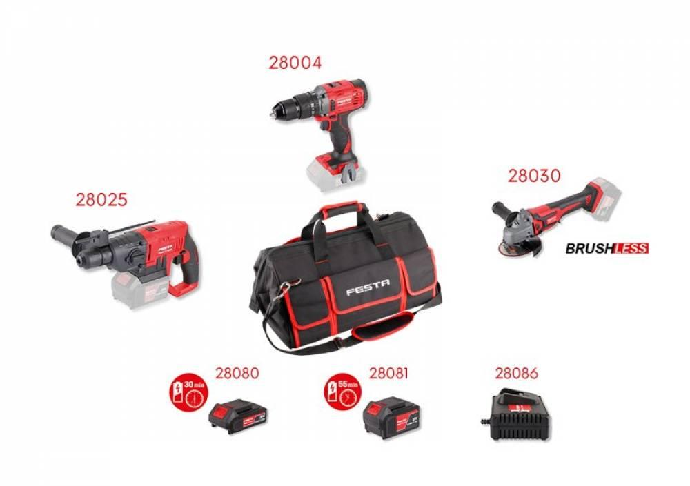 • výhodná zostava AKU náradia FESTA Power tools s praktickou taškou zadarmo