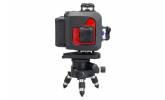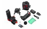 Automatický krížový laser s laserovými linkami smerujúcimi vpred a nahor. Automaticky sa vyrovnáva vďaka kyvadlovému systému. ± 6° samo-nivelačný rozsah s magnetickým tlmením. 4 laserové lúče možno zapnúť samostatne. Vlnová dĺžka 650 nm. Otočné telo umožňuje, aby bol laser presne namierený. Vďaka spodnej základni môže byť používaný so statívom aj bez statívu. Obsah balenia: krížový laser so základňou s nastaviteľnými nožičkami, batérie, predajný obal.