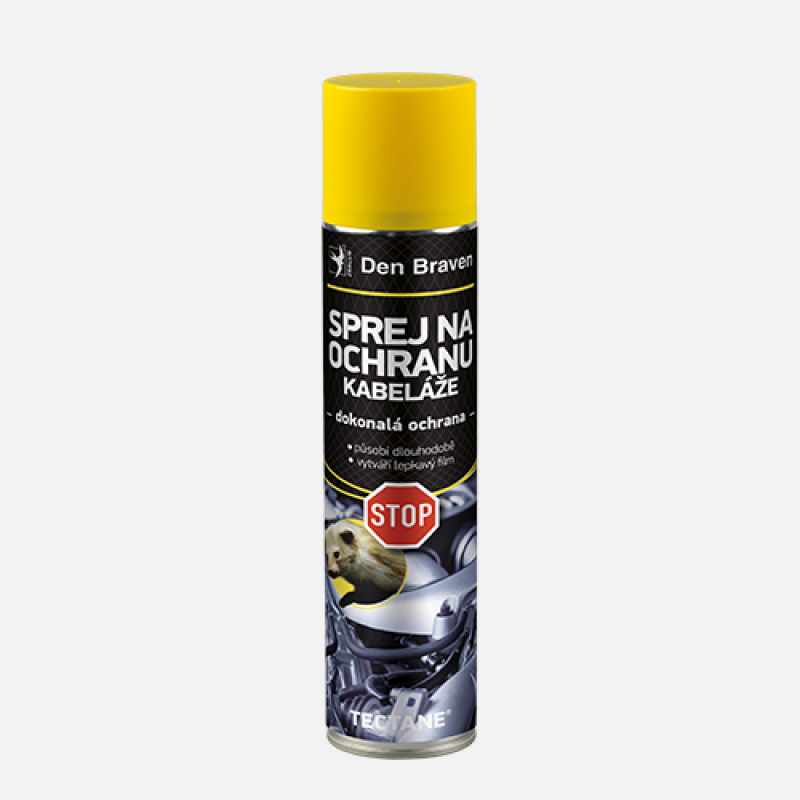 Je dlhodobo pôsobiaci sprej, vytvárajúci ľahko lepkavý nános, ktorý poskytuje ochranu proti prehryznutiu dôležitých častí automobilu hlodavcami. Ide najmä o elektrické vedenia, káble zapaľovania, hadice brzdového a chladiaceho systému, klinové remene, manžety a gumové tesnenia a systémy pruženia. Chráni tiež pri dlhotrvajúcich dažďoch. Charakteristika Čisté, rýchle a jednoduché použitie; Dlhotrvajúci účinok; Sprej nezapácha a môže sa použiť v interiéri; Vytvára ľahko lepkavý film; Detailné informácie k výrobku, postupy, hodnoty atď. sú uvedené v technickom liste.