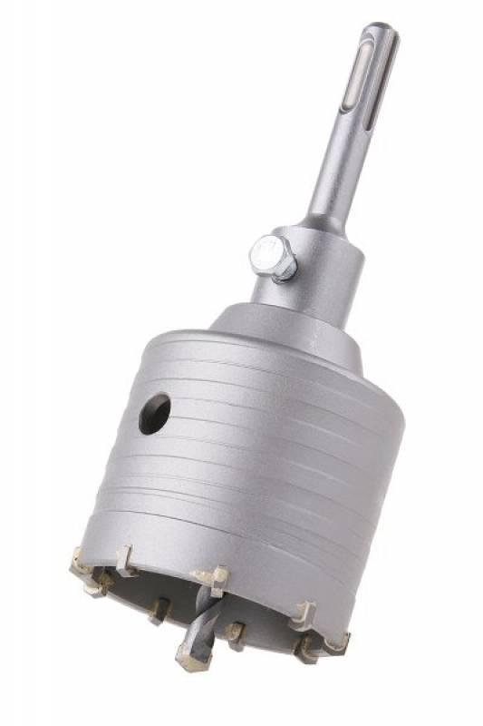 Vysoko kvalitné vykružovacia korunka s SK plátkami, uchytenie SDS +, priemer 67mm. Vodiaci vrták uľahčuje prácu a korunku presne vedie.
