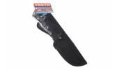 Nerezový lovecký nôž, teflonová povrchová úprava čepele, celková dĺžka 23 cm, ergonomická pogumovaná rukoväť. Nôž nie je zatvárací. Nylonové puzdro s pripnutím na opasok.