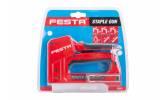 Hliníková spinkovačka na 5 druhov spon s ergonomickou pogumovanou rukoväťou, zámok rukoväte, spona na opasok, zásobník so spodným plnením. Spony 6-14 mm (23960-23964, 23760-23764, 23906-23914), 10-14 mm (23965), 15 mm (23966) a 15 mm (23967).