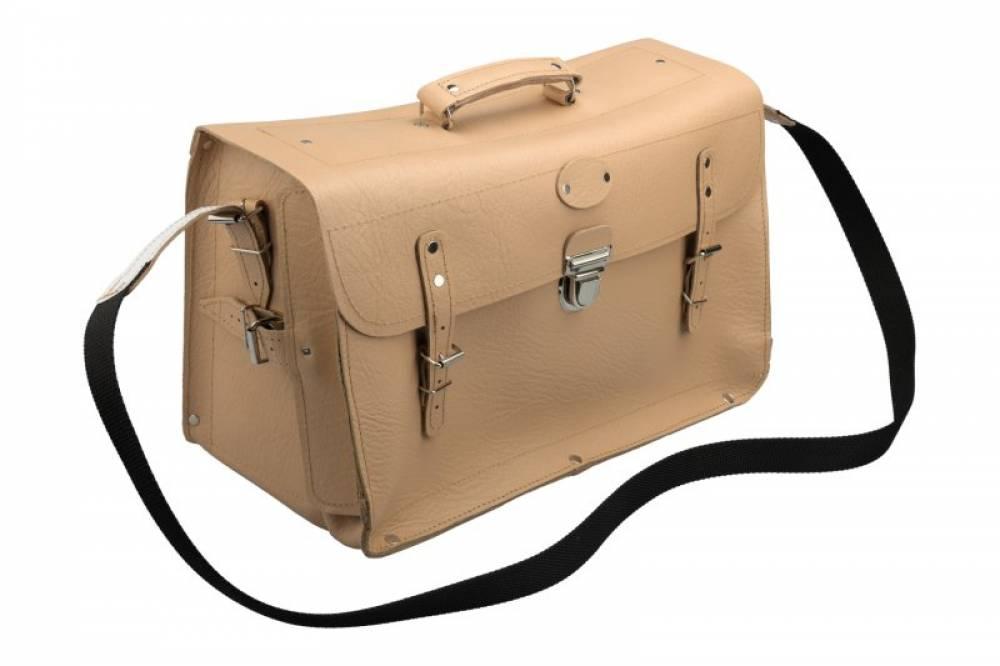 Elektrikárska brašna rozkladacia z prírodnej usne. Otváracia čelná strana s vreckami pre priehľadné uloženie náradia a veľkým vreckom na výkresy. Výstuha dna, bokov a zadným vreckom pre ďalšie náradie. Ideálna pre zámočníkov, atď. Brašna je ušitá špeciálnou PES nití Amann, nosnosť nite je 12 kíl, švy sú v exponovaných miestach ešte nitováne. Prvky: výklopná predná strana brašne, držadlo, popruh cez rameno, oceľová výstuha chrbta. Vnútrná konštrukcia: 1 ploché vrecko na dokumenty, priečka v hlavnom úložnom priestore, priehradky na šrubováky a drobné náradie v dvoch radách. Výstuhy: dno, chrbát, boky brašne, vnútorné vrecko. Hlavný materiál: prírodná hovädzia useň.