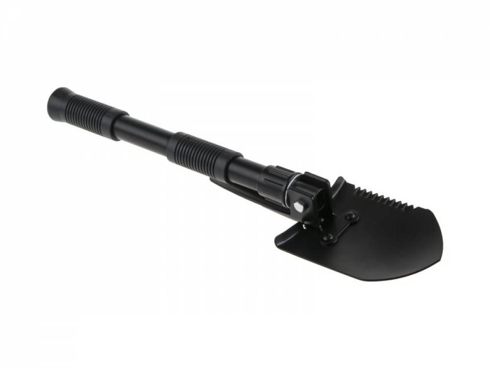 Malá skládacia lopatka s hrotom. Dá sa použít ako lopatka, rýľ, motyka, píla, viacúčelový hrot. Dve gumové protišmykľavé rukoväte. Vyrobené z oceľového plechu a trubiek. Odolný nylonový obal s pútkom na opasok.