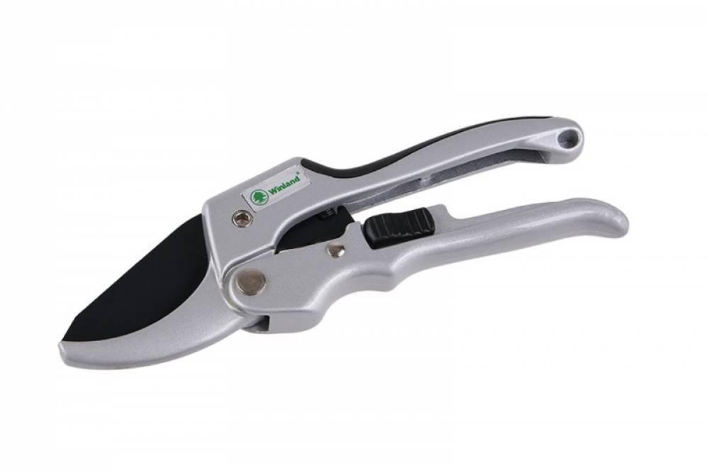 Záhradnícke nožnice Winland s prevodovým kolieskom, čepeľ HCS SK-5 - japonská oceľ - teflón. Zámok nožníc pre bezpečnú manipuláciu a skladovanie.