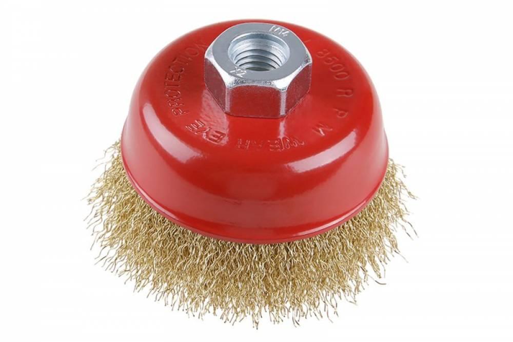 Rotačná kefa - hrnčeková, kefy FESTA zaručujú kvalitné použité materiály i spracovanie, vlnitý drôt - pomosazený ø 0,3mm, priemer 85mm, uchytenie M14 * 2, počet drôtov 1350, dĺžka drôtov 23mm, maximálne otáčky za min. 12500, použitie: pre odstránenie hrdze, farby, leštenie.