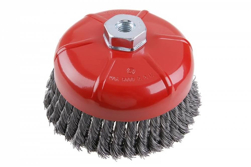 Rotačná kefa - hrnčeková, prevedenie: COPY - patentovaný drôt ø 0,3 mm = copy sa ani pri extrémnom zaťažení nerozplétají, kefy FESTA zaručujú kvalitné použité materiály i spracovanie, priemer 150mm,...