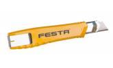 Pákový nôž FESTA s veľmi odolnou a pevnou hliníkovou konštrukciou automatická poistka polohy čepele umožňuje jednoduché vysunutie a zasunutie čepele a zároveň pevne drží vysunutú čepeľ v nastavenej polohe počas rezania štíhly dizajn tela pre jednoduchú manipuláciu a presné rezanie 18 mm klip na čepeľ z nehrdzavejúcej ocele na upevnenie na opasok alebo vrecko predajné balenie 24 ks