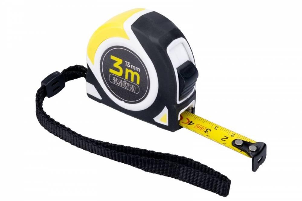 Zvinovací meter, kalená páska, dobre čitateľná stupnica, dve brzdy, pútko, klip na opasok, predajný box.