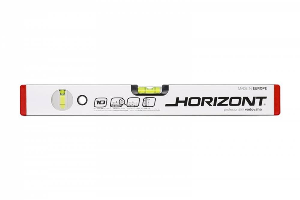 Horizont vodováha s dvoma libelami, presnosť 0,5mm / m = 0,0285°, eloxovaný oteruvzdorný povrch, hrúbka steny ALU profilu 1,5mm, kvapalina v libelách je UV stabilizovaná a fluorescenčná, horizontálna optická libela - uľahčuje a zvyšuje presnosť merania, vodováha je odolná proti prevádzkovým nárazom, 10 rokov záruka na libely, KAŽDÝ KUS JE ELEKTRONICKY TESTOVANÝ.