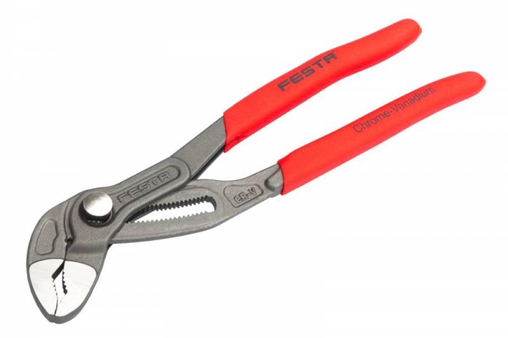Kliešte SIKO FESTA 250mm nastaviteľné s tlačidlom, sú vyrobené z kalenej CrV ocele, jednoduchý mechanizmus nastavenia požadovaného rozstupu čeľustí jednou rukou - stlačením jedného tlačidla, odolný a presný aretačné mechanizmus, tvar čeľustí s brúsenými zubami optimalizovaný k zovretiu trubiek a matíc, posuvná rukoväť je opatrená mäkčeným nekĺzavým povlakom z gumy pre príjemnejšiu prácu.