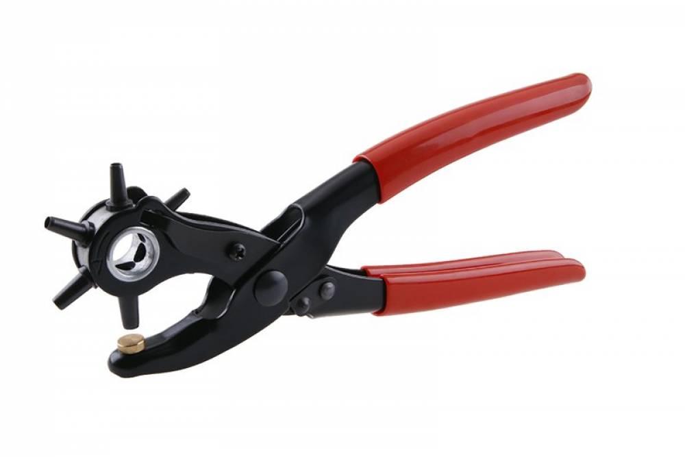 Revolverové dierovacie kliešte na koži, textil a plast. Kliešte s 6 výmennými priebojníkmi v pr .: 2.0, 2.5, 3.0, 3.5, 4.0, 4.5 mm.