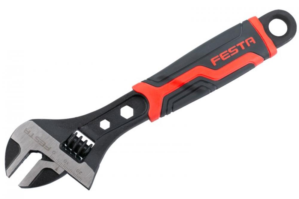 Nastaviteľný kľúč 200mm 8 "FESTA, orientačné stupnice na pevnej čeľusti, rozsah do 29 mm, materiál chromvanadiová oceľ.