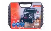 Kvalitná gola sada je vhodná vďaka kvalite použitých materiálov a spracovanie v profesionálnej autodielni alebo servisu. 10 rokov záruka. Všetky časti sú vyrobené z vysokokvalitnej chróm-vanádiovej ocele. Niklová povrchová úprava. Hroty bitov sú zo zliatiny ocele S2. Račne majú jemné delenie 72 zubov, telo račne je z CrV ocele, zubový mechanizmus z S2 ocele, ergonomicky tvarovanú rukoväť so zdravotne nezávadnú gumou. Nový dizajn plastového kufri z primárneho materiálu s kovovými uzávermi a pánty veka.