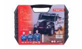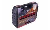 Kvalitná gola sada je vhodná vďaka kvalite použitých materiálov a spracovanie v profesionálnej autodielni alebo servisu. 10 rokov záruka. Všetky časti sú vyrobené z vysokokvalitnej chróm-vanádiovej ocele. Niklová povrchová úprava. Hroty bitov sú zo zliatiny ocele S2. Račne majú jemné delenie 72 zubov, telo račne je z CrV ocele, zubový mechanizmus z S2 ocele, ergonomicky tvarovanú rukoväť so zdravotne nezávadnú gumou. Nový dizajn plastového kufri z primárneho materiálu s kovovými uzávermi a pánty veka.