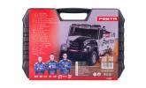 Sada hlavíc a nástavcov 1 / 4,3 / 8,1 / 2. Všetky časti sú vyrobené z chróm-vanádiovej ocele kovaním, dobre kombinovaná sada v prehľadnom plastovom kufri, račne s prepínaciou páčkou a uvoľňovacím tlačidlom, ergonomicky tvarovaná rukoväť.