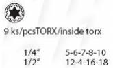 Sada nástrčných hlavíc TORX. Všetky časti sú vyrobené z chróm-vanádiovej ocele kovaním, dobre kombinovaná sada v prehľadnom kovovom organizéri.