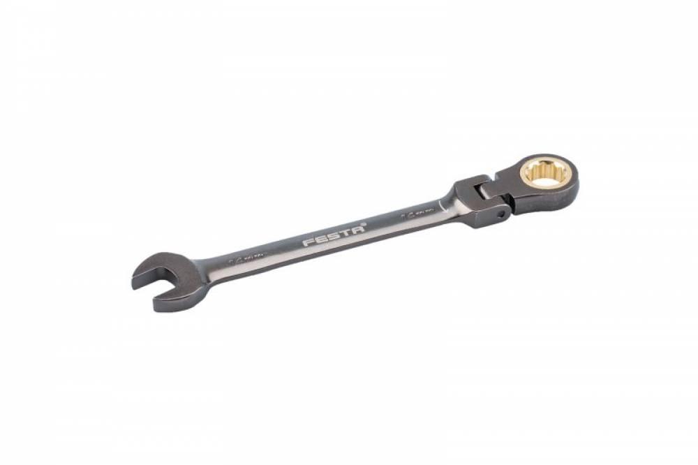 Račňové kľúče FESTA s kĺbom pre použitie pod uhlom s výhodou rohatky (račne) sú vyrobené kovaním z kvalitnej chromvanadiovej ocele. Táto oceľ povrchovo upravená matným tvrdochrómom pre dosiahnutie optimálnej povrchovej tvrdosti a odolnosti voči korozívnym vplyvom. Rohatku ráčny klíče tvoří 72 kalených zubů, záber po 5-tich oblúkových stupňoch. kvalitou, tvrdosťou a presnosťou presne zodpovedajú norme DIN / ISO.