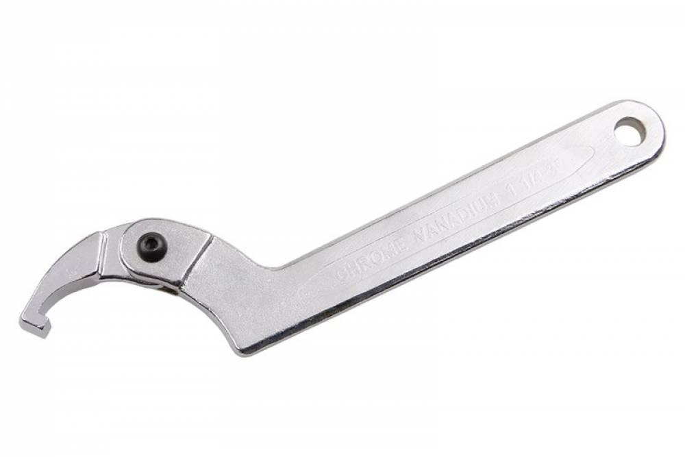 Nastaviteľný hákový kľúč pre goliere, krúžky a ložiská. Jediná čeľusť s upínacím kolíkom v priemyselnej povrchovej úprave. Pri používaní zaistite presné nasadenie háku čeľuste. prevedenie: matný chrómovaný povrch, kovaný, chróm vanadiová oceľ.