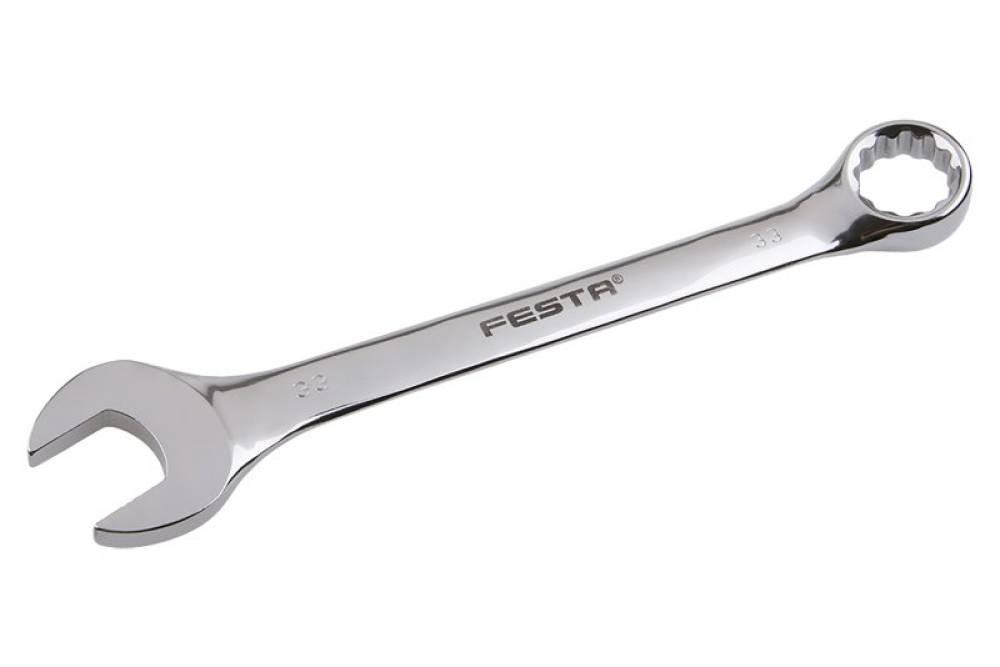 Kľúč očkoplochý FESTA je kovaný z jedného kusu chromvanadiovej ocele podľa normy DIN3113, ošetrené dvoma vrstvami niklu a jednou vrstvou chrómu. Vhodný do autodielní a do praktického denného náradia.