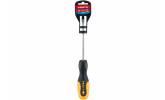 Kovový driek skrutkovača je vyrobený z kvalitnej chromvanadiovej ocele, kalený hrot je magnetický, kombinácia polypropylénu a gumy na rukoväti a jej ergonomický tvar zaručuje dobré antišmykové vlastnosti a dobrú odolnosť voči mazadlám a chemikáliám