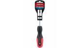 Kovový driek skrutkovača je vyrobený z kvalitnej chromvanadiovej ocele, kalený hrot je magnetický, kombinácia polypropylénu a gumy na rukoväti a jej ergonomický tvar zaručuje dobré antišmykové vlastnosti a dobrú odolnosť voči mazadlám a chemikáliám