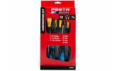Sada v praktickom plastovom púzdre, legovaná oceľ S2, magnetická koncovka, ergonomická dvojkomponentný mäkčená rukoväť. (plochý 3x75,5x100,6x175; krížový PH0,PH1PH2,PH3).