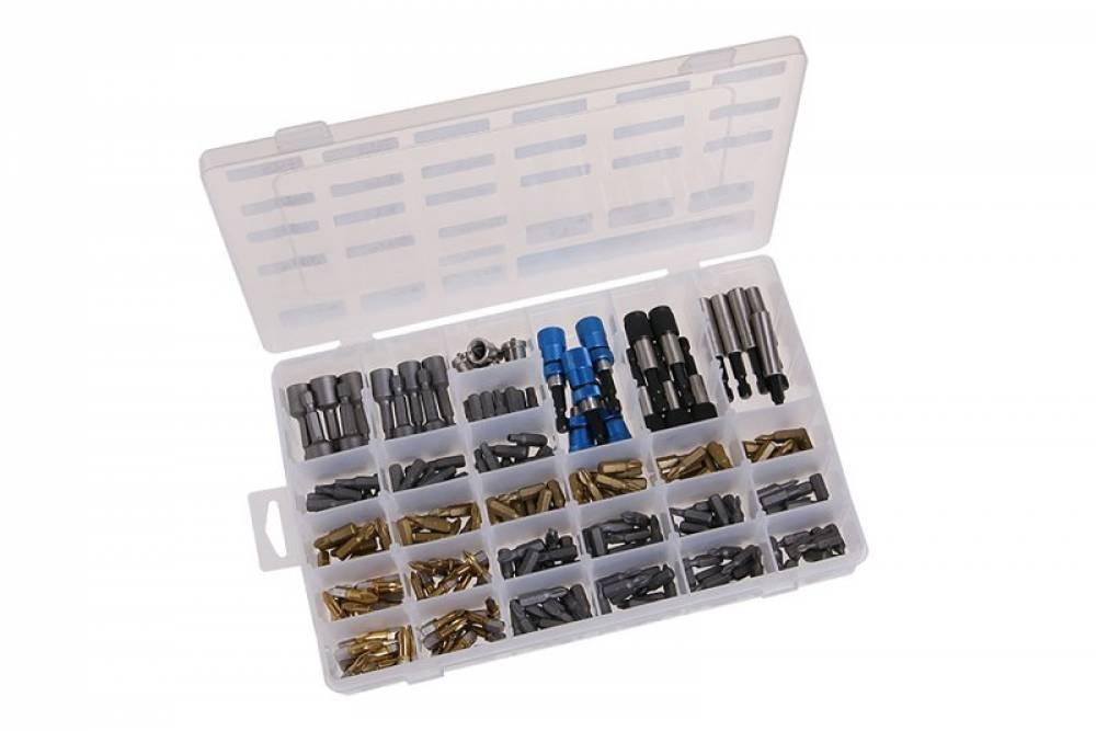 Od svetového výrobcu Ståhlberg s mnohoročnými skúsenosťami za použitia najnovších technológií. Praktická predajná sada bitov a adaptérov, ktoré sú vyrobené presným kovaním (zvyšuje pevnosť až o 20% oproti obrábaným) z chromvanadiovej ocele S2 (vynikajú húževnatosťou), tvrdené na 61-62 HRC. Na pracovných plochách sú diamantové zrná alebo drážky ako najúčinnejšia ochrana proti vyšmyknutiu zo záberu. zlatá, titan-nitridová vrstva (TiN) chráni bit proti oteru. Sada obsahuje 28 druhov po 5 alebo 10 kusoch, cena je redukovaná o 5% a plastový box je bezplatný darček.