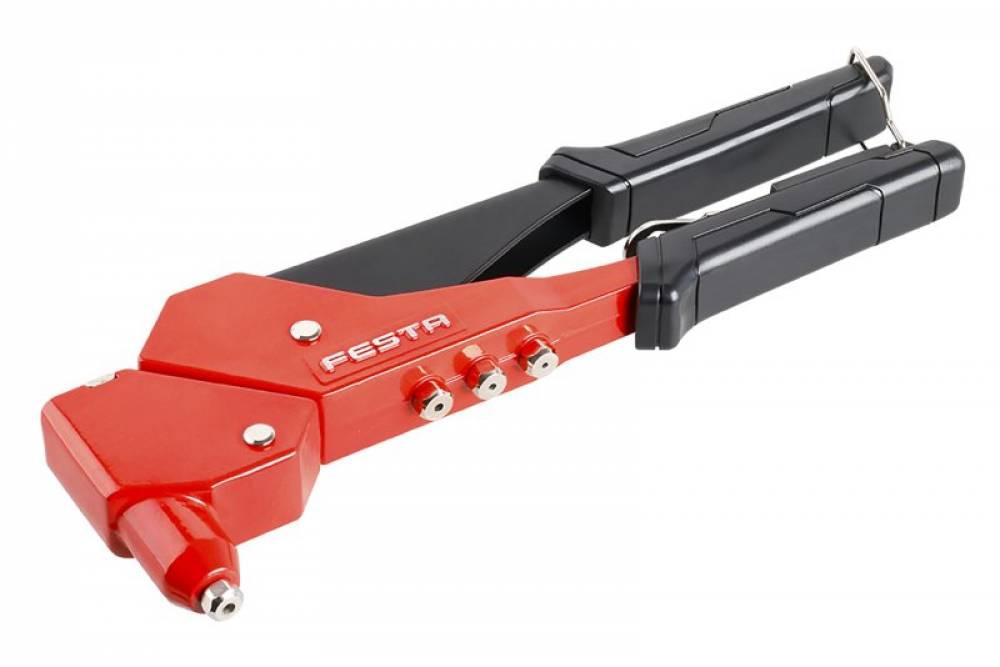 PVC rukovät; Robustný oceľový rám, Poniklované čeľuste; Trhacie nity: 2.4 / 3.2 / 4.0 / 4.8 (Al + oceľ); Otočná hlava 360; váha: 620g.