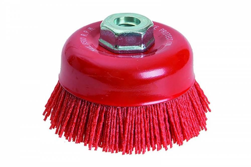 Rotáčna kefa hrnčková s nylonovými vlnitými vláknami. Uchytenie M 14. Vhodné na leštenie, odstránenie farieb, opracovanie dreva.