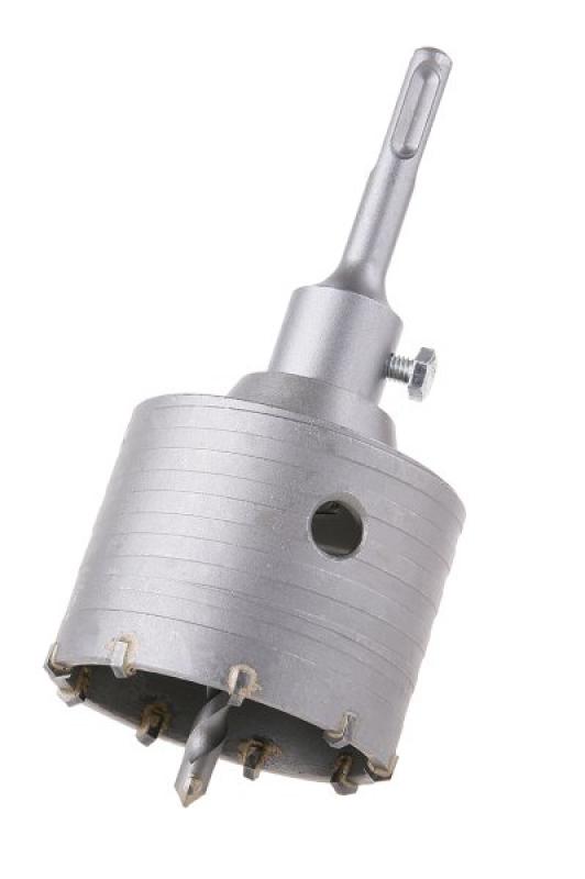 Vysoko kvalitné vykružovacia korunka s SK plátkami, uchytenie SDS +, priemer 73mm. Vodiaci vrták uľahčuje prácu a korunku presne vedie.