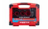 Sada HSS korunkových vrtákov BI-METAL 13ks, priemery: 19,22,29,38,44,51,57,64 mm, použitie: drevo, drevotrieska,sadrokartón, kovy do sily 8mm.