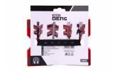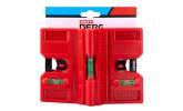 Krídlová stĺpková vodováha s tromi libelami. S elastickou páskou pre upevnenie na drevené stĺpy alebo plastové rúrky a priľnavými magnetmi. Dodaný v balení po 6 ks. V rôznych farbách.