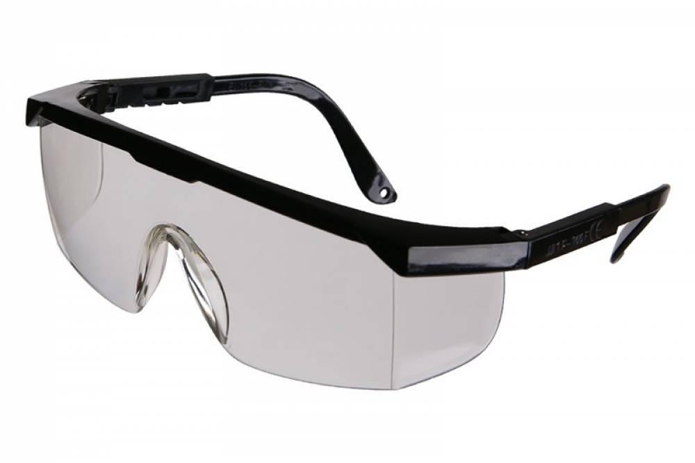 Číre ochranné okuliare s polykarbonátovými nastaviteľnými stráničkami a zorníkom, CE EN 166.