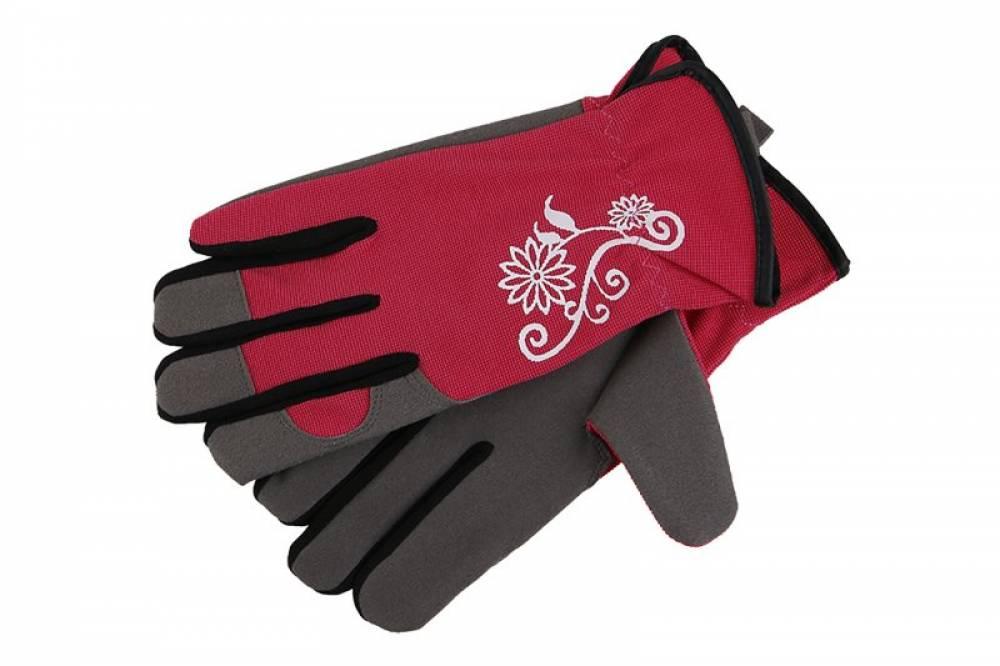 Rukavice špeciálne vyvinuté pre záhradné práce z umelého semišu v dlani, chrbát rukavice je z elastickej tkaniny Spandex, so sťahovacou gumičkou na zápästie, ozdobná potlač. Veľkosť 9.