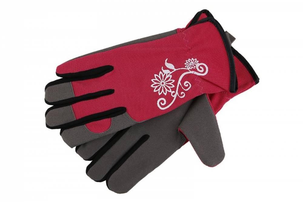 Rukavice špeciálne vyvinuté pre záhradné práce z umelého semišu v dlani, chrbát rukavice je z elastickej tkaniny Spandex, so sťahovacou gumičkou na zápästie, ozdobná potlač. Veľkosť 7.