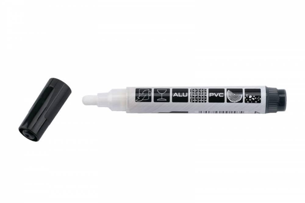 Špeciálny značkovač - fix so širokým hrotom 4 - 6,5 mm - čierny, je určený na popisy železných konštrukcií, skla, plastov, čiernych strečových fólií atď.. K napusteniu hrotu farbou je potrebné značkovač pretrepať - guľôčky vo vnútri premiešajú farbu a stlačením hrotu dovnútra dôjde k nasatiu farby a značkovač - fix je pripravený k použitiu.