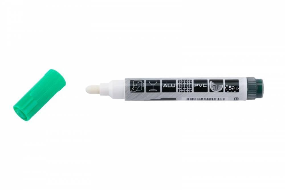 Špeciálny značkovač - fix so širokým hrotom 4 - 6,5 mm - zelený, je určený na popisy železných konštrukcií, skla, plastov, čiernych strečových fólií atď.. K napusteniu hrotu farbou je potrebné značkovač pretrepať - guľôčky vo vnútri premiešajú farbu a stlačením hrotu dovnútra dôjde k nasatiu farby a značkovač - fix je pripravený k použitiu.