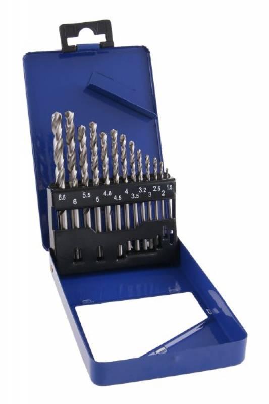 Sada vybrusovaných vrtákov HSS-G, spĺňajúce normu DIN 338, RN, vrtáky sú vyrobené z vysoko kvalitnej rýchloreznej ocele (HSS), oceľ je zušľachtená legúr - Wolfram 9%, Molybdén 3%, Chróm 4%, Vanádium 1% - pre vŕtanie ocelí do 900 N / mm². Presné vybrúsenie skrutkovice pre maximálny výkon, presnosť a dobré centrovanie, vďaka vybrúseniu uhla špičky vrtáka 118° možno vŕtať aj bez nutnosti použitia jamkára, určené na priemyselné použitie.