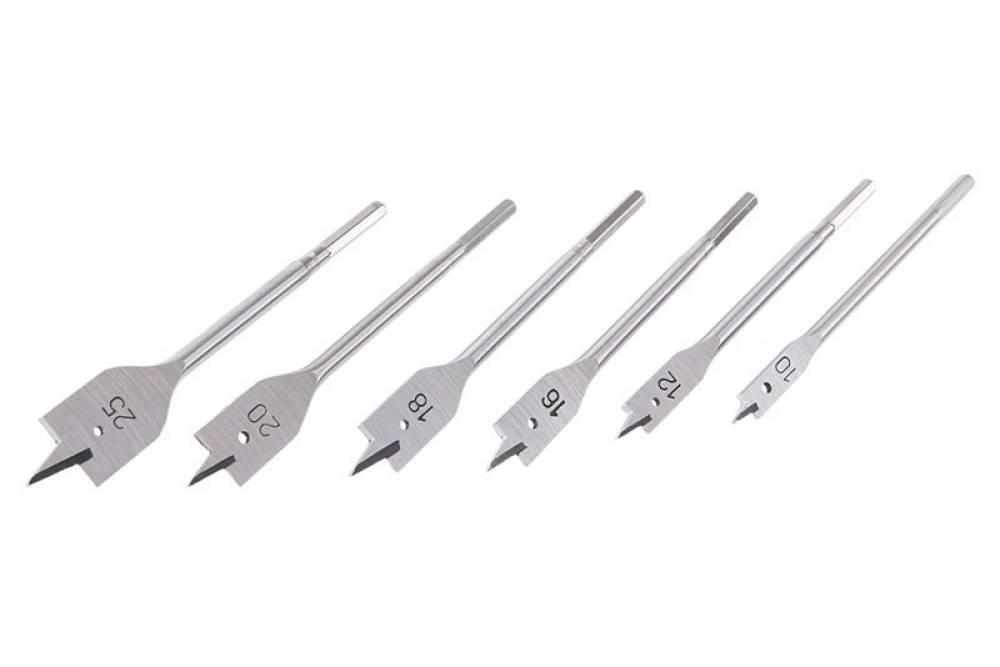 Sada kopinatých vrtákov Ø 10, 12, 16, 18, 20, 25 mm, použitie: pre vŕtanie otvorov do mäkkého i tvrdého dreva, uchytenie: šesťhranná stopka - zamedzuje pretáčaniu, balenie: PVC puzdro.