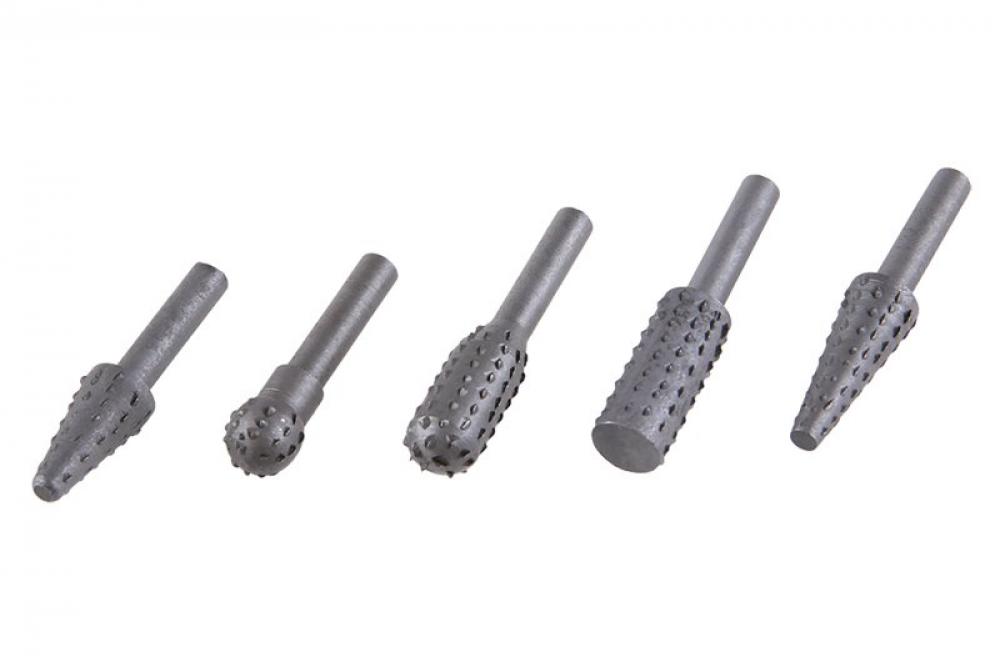 Rotačný rašple - sada 5kusů, stopka Ø 6 mm pre úchyt vo vŕtačke - akku vŕtačke, pre hrubšie obrusovanie a brúsenie dreva - drevotriesky - preglejky, balenie: