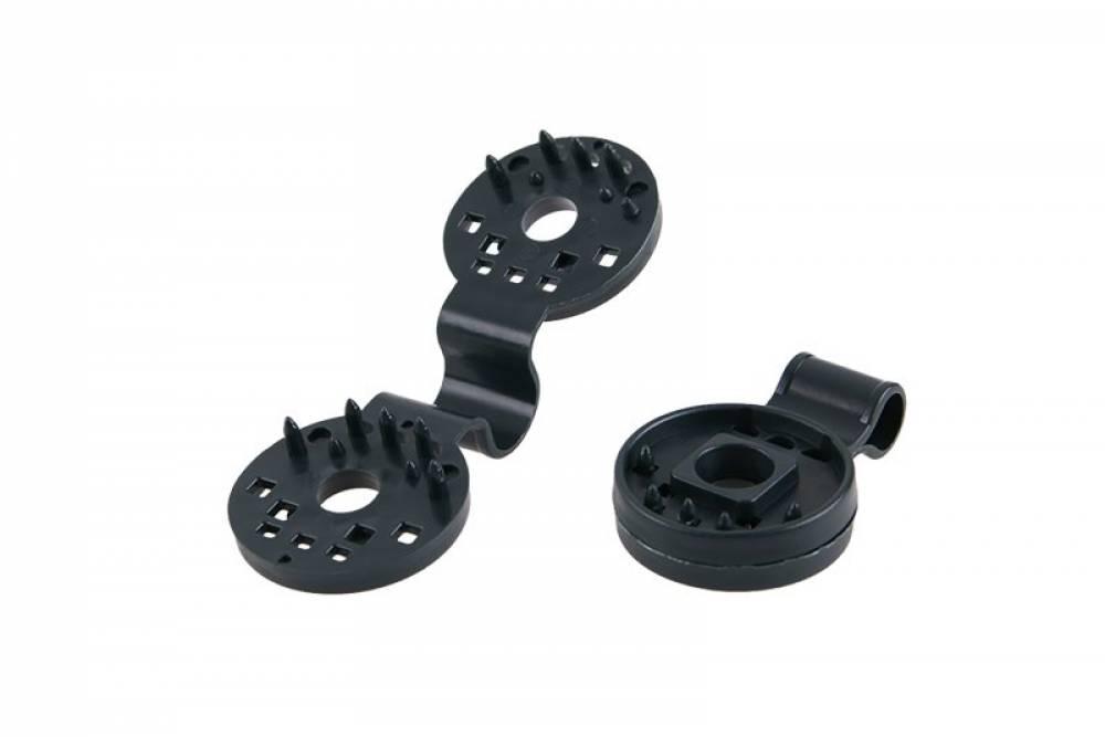 Plastové spony určené na uchytenie tieniacej tkaniny na plot.