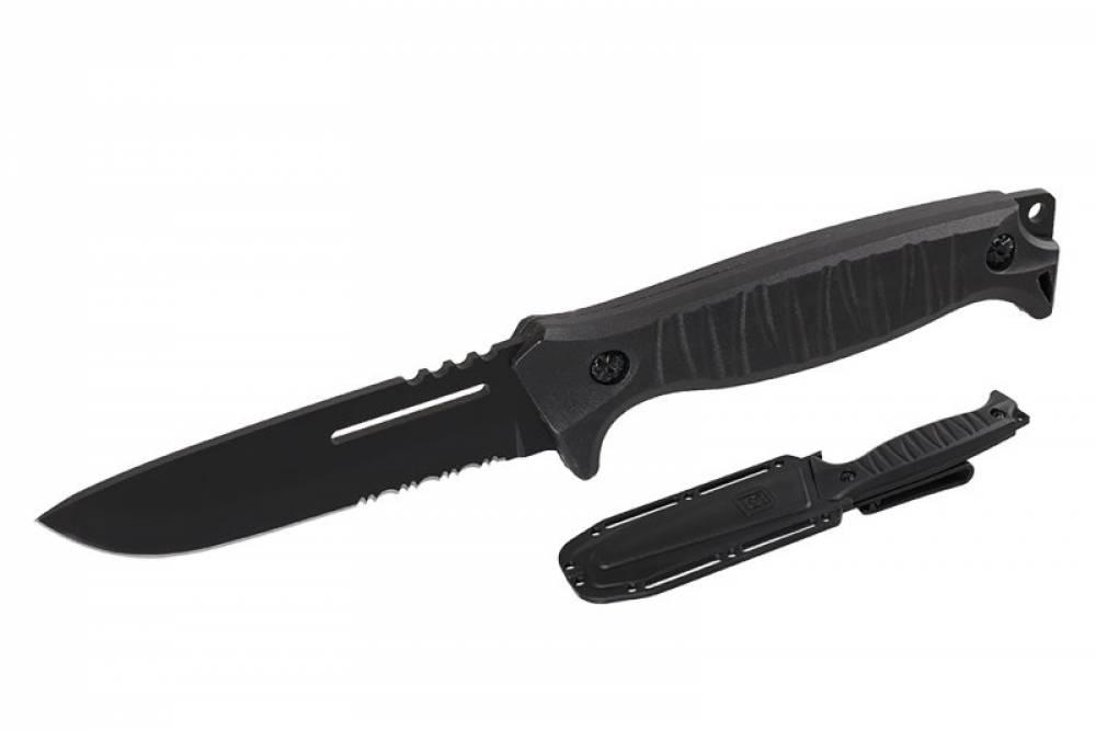 • plastové puzdro s poistkou proti samovoľnému vypadnutiu noža, klipom na opasok a otvory pre prichytenie na batoh