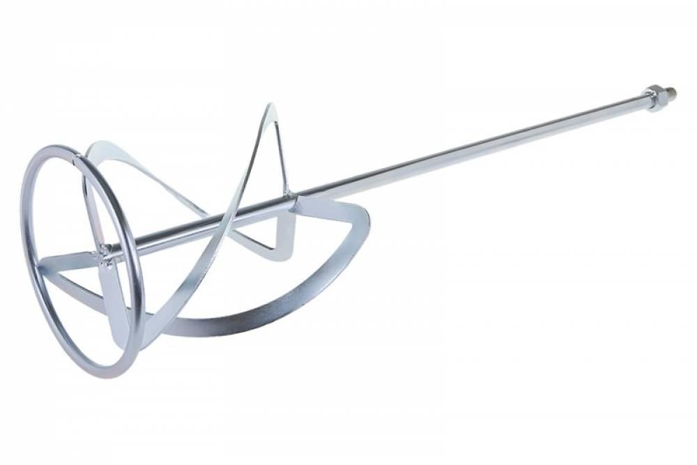Miešadlo - ľavotočivé (miešací účinok zhora tlačí zmes nadol) - metla, pozinkované, rozmer: Ø 160 x 600 mm - M14, použitie: pre ťažké materiály s vysokou viskozitou. malty, betóny, cementové a vápenné...