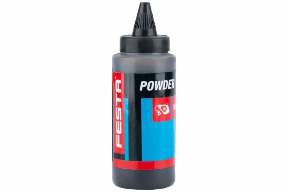 Púder čierny, hmotnosť 180 g, použitie:ako náplň do navíjačov na sfarbenie povrázku, vhodný pre murárov, sadrokartonárov, maliarov ... najmä vo vonkajších priestoroch - napr. na fasády atď.