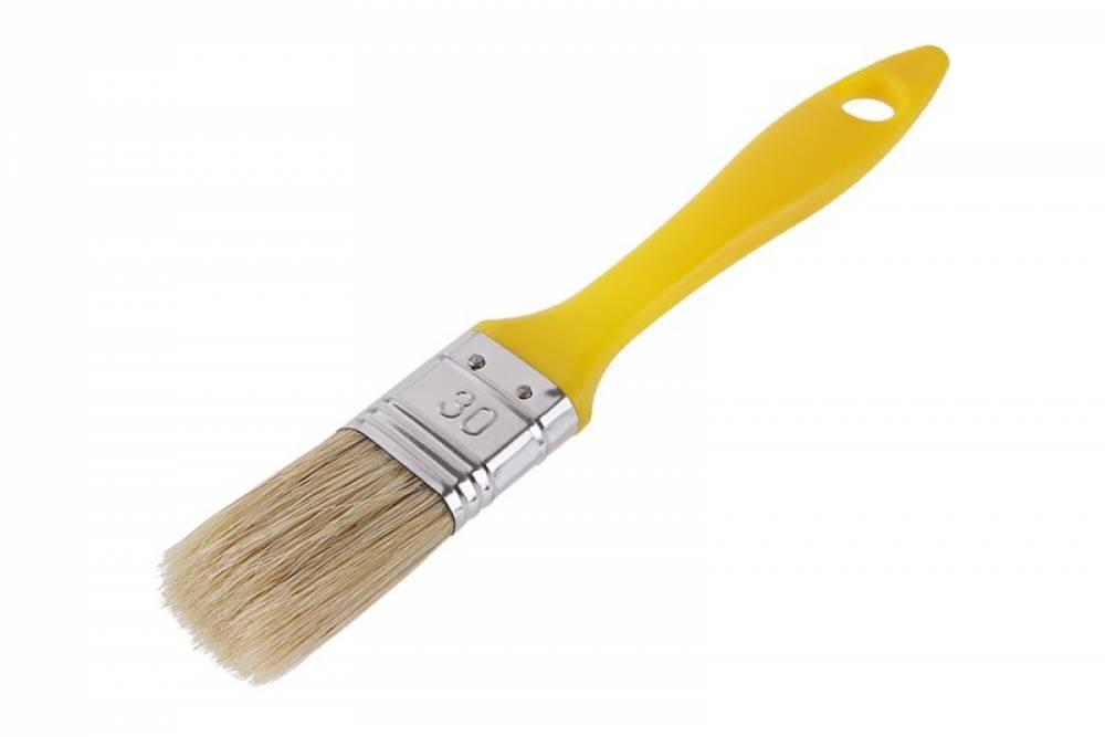 Štetec plochý 30x15x40mm so žltým plastovým držadlom, svetlá štetina - táto štetina sa získava z čínskych ošípaných vo farebnom prevedení svetlá, čierna a sivá. Hmotnosť 0,037 kg.