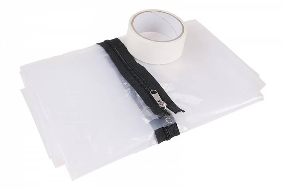 Veľmi účinná a praktická uzávera, vyhnete sa znečisteniu priľahlých miestností. Rozmer fólie 120 cm x 220 cm. Hrúbka fólie 100 mikrometrov. Dodávaná so zipsom a samolepiacou páskou 45 mm x 25m. Opakovane použiteľná. Jednoduchá montáž. Umývateľná.