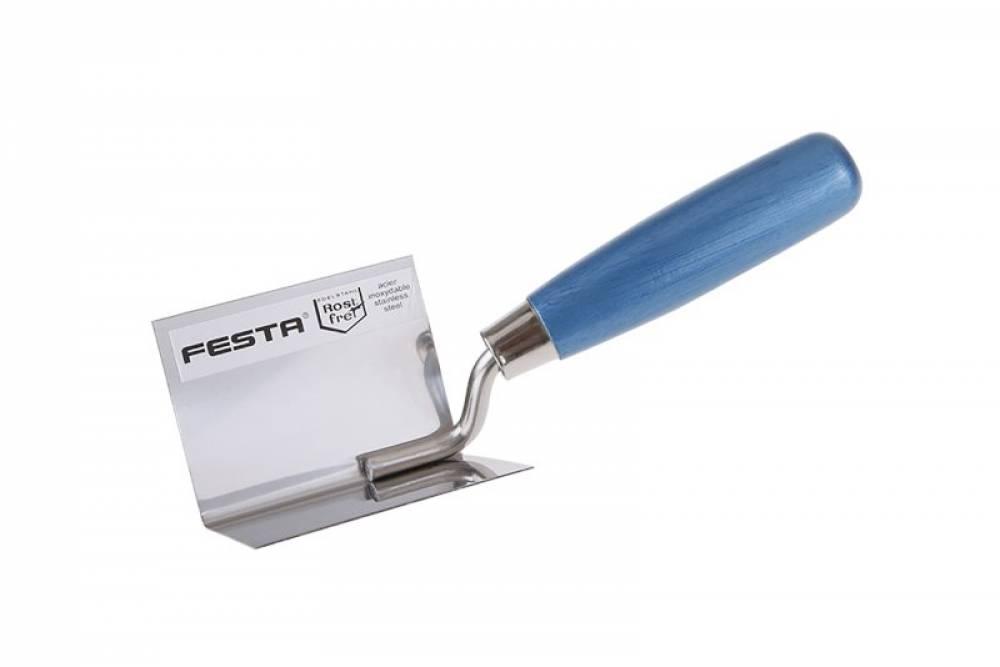 Koutová vyhlazovací nerezová lžíce FESTA 80 x 60 x 60 mm s dřevěnou ručkou. Lžíce rohová (koutová) je vyrobená z kvalitní nerez oceli o tloušťce 1,0mm, držadlo je dřevěné s lakovanou povrchovou úpravou. Vymazávačka se používá k úpravě a začištění jak vnějších, tak vnitřních rohů.